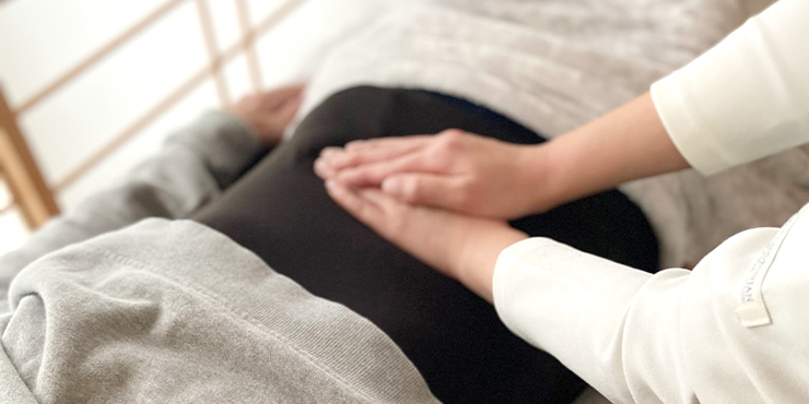 その後、お腹全体のマッサージとツボを押しながら、おなかの状況を観させて頂きます。
